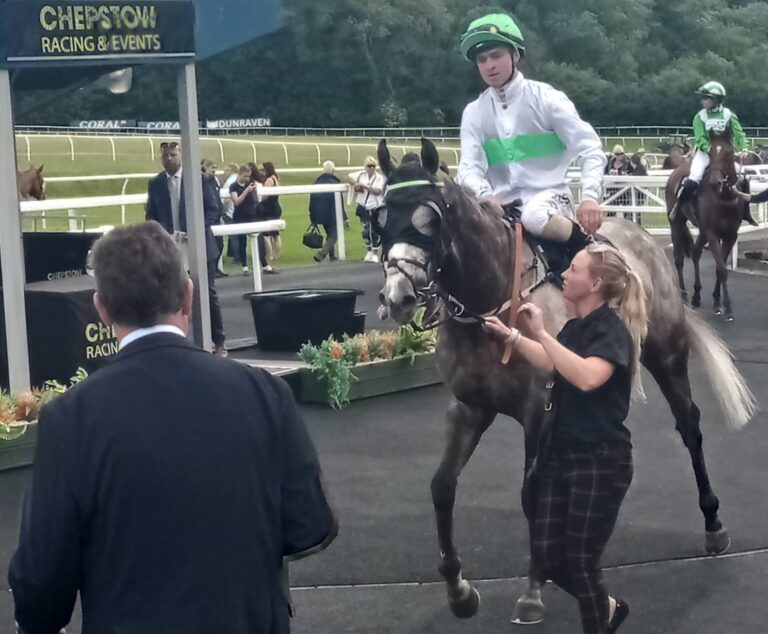 Gallant Lion for GL Racing benefitted from the fitting of blinkers for the first time when defying top weight at Chepstow under Ryan Kavanagh.